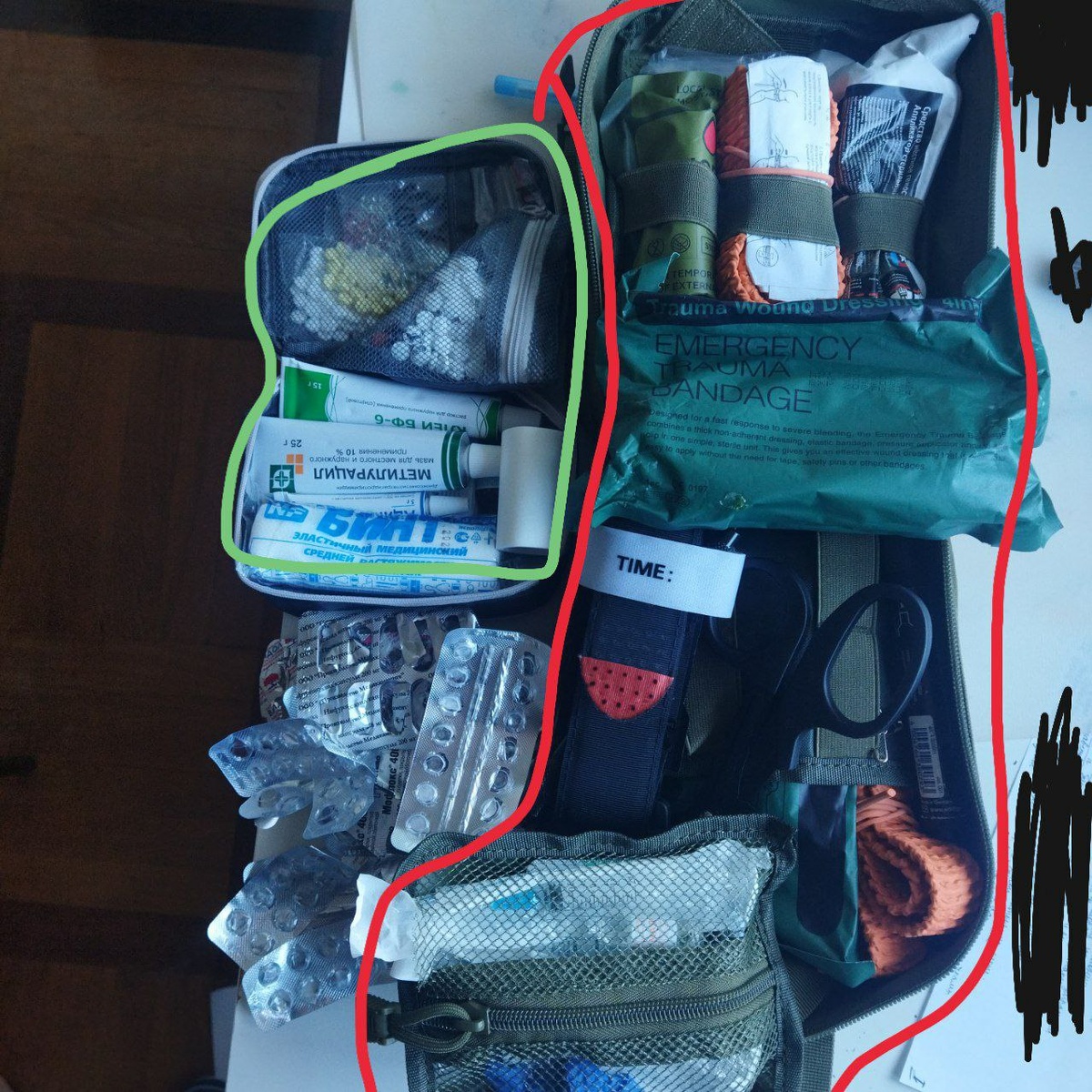 Чтобы не пришлось никого скидывать в овраг, собрал тактикульную аптечку. Таскаю в багажнике параплана (https://t.me/homo_game/16) и пригодилась, когда приземлялся в условиях пиздореза.