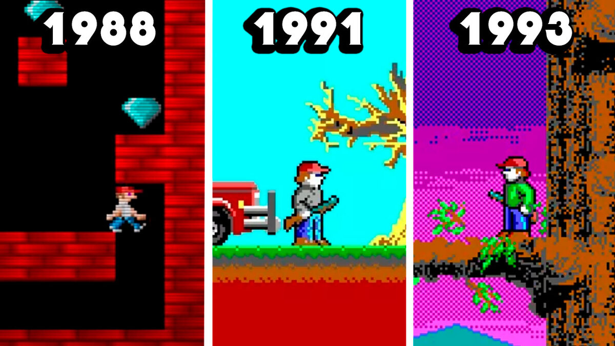 Многие из тех, у кого в 90-е был доступ к компьютеру, безусловно, видел и даже играли в игру "Dangerous Dave in the haunted mansion", где некий мужик с дробовиком в красной кепке исследовал старый дом, наполненный нечистью, с целью спасти своего брата. Но это была не единственная и даже не первая игра из данной серии. Dangerous Dave (1988) История Дэйва началась еще в далеком 1988 году. Автором и разработчиком данной игры стал легендарный Джон Ромеро, который приложит руку к созданию таких культовых игр как "Wolfenstein 3D" и "Doom". Первая версия была выпущена для компьютеров Applw II и имела всего 6 цветов в своем арсенале. Данная игра совсем непохожа на известную всем игру про Дэйва, о которой речь пойдет дальше. Цель игры состоит в том, чтобы пройти все 10 уровней, собирая золотые чаши после в конце каждого из них и минуя или уничтожая встретившихся нам врагов. Помимо этого, в игре есть и немало других опасностей, среди которых вода, огонь, растения и т.д. И если персонаж погибнет,