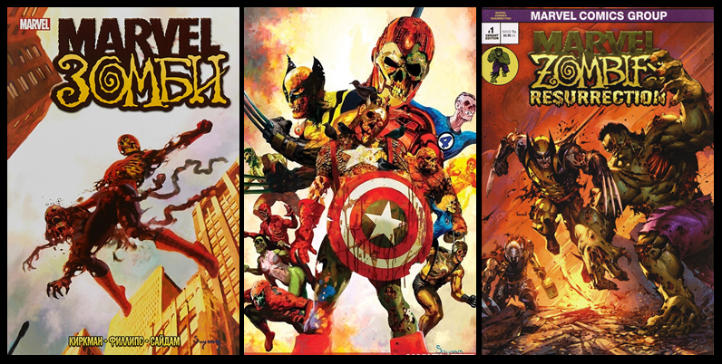 Оригинальные Комиксы которые стали основой для обложек серии Марвел Зомби ( С Первого по Третий Том ) ... Marvel Zombies - ограниченные серии комиксов издательства Marvel, которые выходили с декабря 2005. В них представлены зомби-версии супергероев Вселенной Marvel. Основное действие происходит во вселенной Земля-2149 (англ. Earth 2149) Мультивселенной Marvel. Marvel Zombies: Dead Days Marvel Zombies: Dead Days — это одноразовый комикс, впервые опубликованный в мае 2008 года издательством Marvel. Этот выпуск является приквелом к первой ограниченной серии Marvel Zombies. История происходит одновременно во время событий второго выпуска Marvel Zombies vs. The Army of Darkness. M Zombies vs. The Army of Darkness #1-5 ... Зомби Marvel против Армии Тьмы - комикс 2007 года, ограниченная серия, изданный Marvel Comics совместно с Dynamite Entertainment. Комикс - Кроссовер, в котором Эш Уильямс, герой фильма Зловещие мертвецы, оказывается во вселенной Marvel Zombies ... Кроссовер является