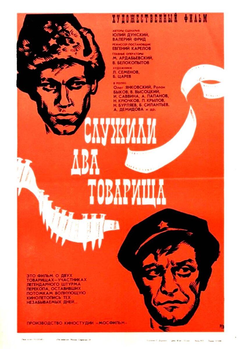 «Служили два товарища» - удивительный эмоционально-идеологический сюрприз от Партии и Правительства. Оказывается, события Гражданской можно было осветить и таким образом – как величайшую национальную трагедию. В 1969-м появится "Адъютант его превосходительства", в котором неожиданно время пребывания на экране "белых" будет едва ли не больше, чем у "красных", и многие из первых ещё и окажутся вполне приличными людьми. Ещё через год режиссёры Алов и Наумов одарят нас новым - и вовсе поразительным сюрпризом – фильмом «Бег» по Булгакову (!!), в котором милейший женераль Чарнота разом перетягивает на себя одеяло зрительского внимания, да так и не отпускает его до последнего кадра.
