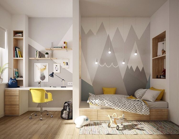 При планировании детской комнаты, в первую очередь необходимо опираться на предпочтение ребенка! Спросите своего спиногрыза, шучу 😁 Обсудите с ним, какую детскую комнату хочет именно ОН? О чем мечтает? Что нравится? Важно учитывать возраст ребенка : Дошколята. 0-7 ЛЕТ Габариты мебели подбираем под сегодняшние размеры малыша. Если мы говорим о кровати, то не больше 140-160 см. Именно так ребенок чувствует себя комфортно, а не как в одежде, которую вы взяли на 3 размера больше . Он с удовольствием спит и играет в своей комнате. Увлечения и предпочтения ребенка, помогут вам понять, какие детали можно добавить в будущий интерьер: балдахин/вигвам/звездное небо/меловая стена Боль всех мамочек таких малышей - игрушки! Их количество почему-то всегда растёт в геометрической прогрессии, не смотря на то, что мы периодически делаем «зачистку». Во избежании вечного беспорядка, необходимо как следует продумать систему хранения. Важно! На окнах должен стоять замок! На подоконниках не до
