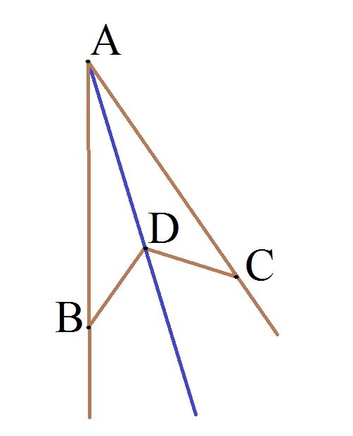 Второй признак равенства треугольников Уважаемые мамы и папы, дедушки и бабушки! Предлагаю вспомнить второй признак равенства треугольников на примере решения задачи 123 из 9-го издания учебника по геометрии для 7-9 классов авторов Л. С. Атанасян, В. Ф. Бутузова, С. Б. Кадомцева, Э. Г. Позняк и И. И. Юдиной под научным руководством академика А. Н Тихонова. Условие: На биссектрисе угла A взята точка D, а на сторонах этого угла – точки B и C такие, что угол ADB равен углу ADC. Докажите, что BD = CD. Решение: Биссектриса угла – луч, исходящий из вершины угла и делящий его на два равных угла (глава I, §3 п.6). Сделаем чертёж условия задачи: По условию задачи угол ADB равен углу ADC. Сторона AD является общей у треугольников ADB и ADC. Кроме того, равными являются углы DAB и DAC, так как по условию задачи, точка D лежит на биссектрисе угла A (угла BAC). В главе II §3 п.19 учебника приводится теорема, доказывающая второй признак равенства треугольников: Если сторона и два прилежащих к ней у
