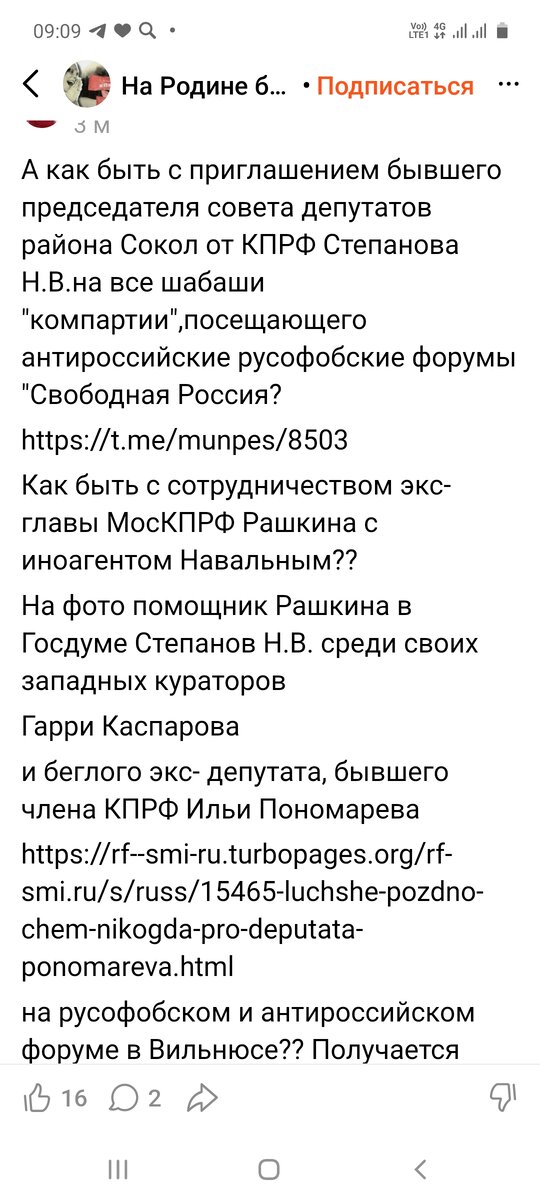 Написать эту статью меня сподвиг паблик руководителя юрслужбы КПРФ Мухамеда Биджева Если вы откроете эту статью, то прочитаете обвинения Единой России в иноагентстве. Мне пришлось ответить в комментах на эту статью Впрочем если вы не поленитесь и откроете ее, то мои комментарии там и увидите. Здравствуйте уважаемые читатели канала Пролетарская правда Извините меня за повторяемость, но как говорится НЕ ПРОХОДИТЕ МИМО, и я не смог пройти. Мне надоело видеть и слышать ложь и клевету распространяемую КПРФ. Нет, я не отрицаю смысл статьи Биджева, предатели засели везде, во всех структурах. Например они и на телевидении, а как еще относится к постоянному приглашению на передачу про Украину предателя первого зампреда Зюганова Юрия Афонина, который в свою очередь протаскивает во власть агента западных спецслужб Степанова? Что на телевидении не в курсе чем занимаются в КПРФ и кто такой Степанов? Например в Мосгордуме уже разобрались и отзывают награду у Степанова за вклад в развитие Москвы П