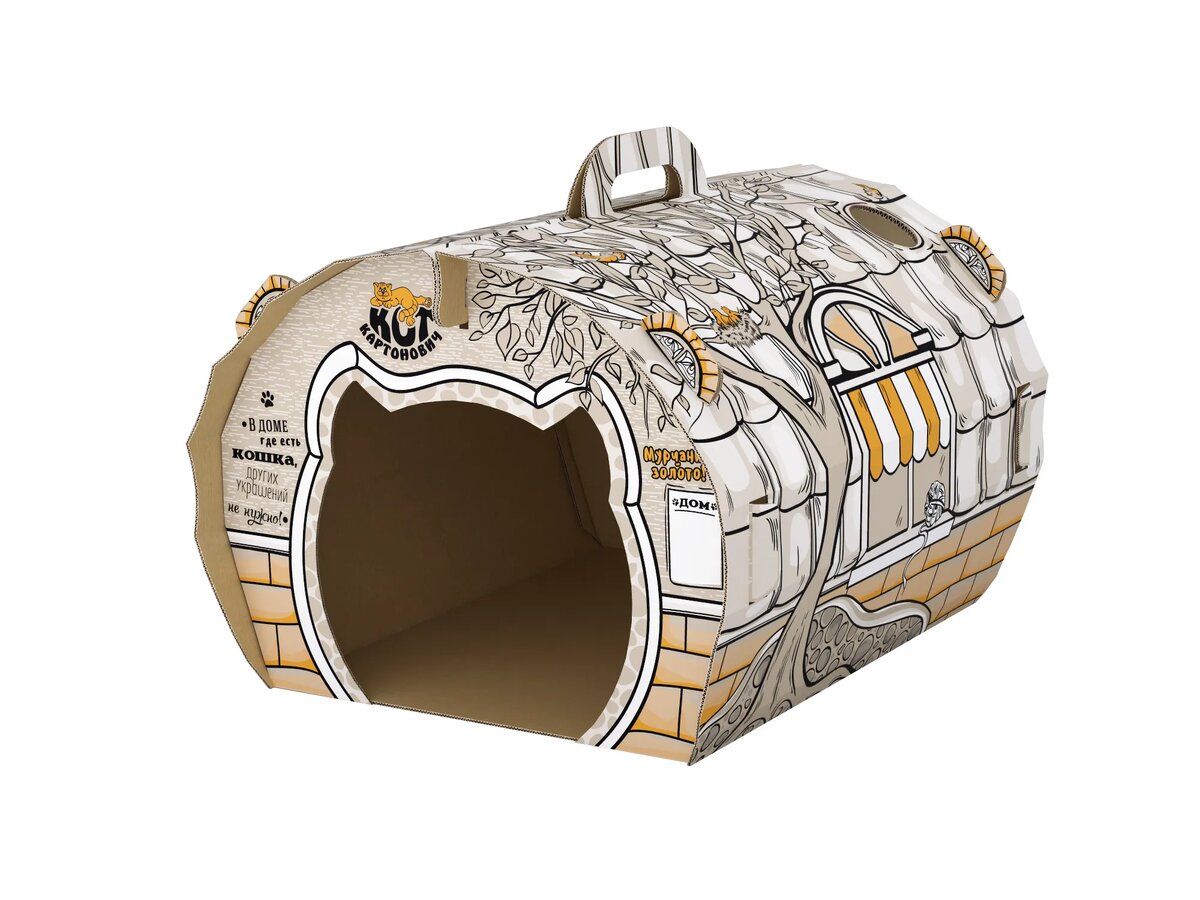 Недавно купили кошкам еще один домик. Вообще много разных пробовали. Самым бесполезным оказался картонный, купленный в магазине "Четыре лапы". Выглядел здорово, но толстые жопки наших котов промяли его в первый же день, потому что котики очень хотели залезть на него сверху, а не как положено - внутрь)). Наверное, штука неплохая, если в доме один кот)))) Правда, учитывая стоимость, даже на один день игры можно купить. Стоил что-то около 250р. Хотя обычные коробки котам нравятся не меньше)) Что-то, вроде этого) Да что говорить про картонный.... Многоэтажный домик и то уже расшатали, на одном столбике содрали джутовую веревку. А домику только около года))) Но это - любимое место большинства котов. И игрушка, и когтеточка, и лежанка, и домик. Так что, по моему мнению - просто must have. Вот такая у нас: Купили еще мягкий домик и две подстилки. На Озоне. Одна подстилка была сразу же оккупирована кошкой Почкой, так что даже не сфотографировала. Но вот домик оказался очень ничего, несмотря н