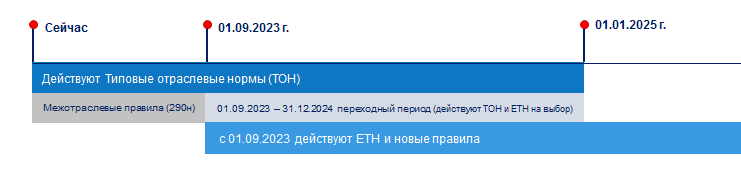 Переход на ЕТН повысит безопасность сотрудников и сократит расходы компании на закупку СИЗ. Зачем переходить на ЕТН? Во-первых, это требование закона. Напомним, что с 1 марта 2022 г. изменился порядок бесплатной выдачи СИЗ. «» Было: межотраслевые правила и типовые отраслевые нормы выдачи СИЗ (Приказ 1 и Приказ 2). Стало: правила и единые типовые нормы выдачи СИЗ и смывающих средств (ЕТН). Когда надо перейти на ЕТН: с 1 сентября 2023 г. до 31 декабря 2024 г. В этот период можно использовать единые типовые нормы или типовые отраслевые нормы выдачи СИЗ. С 1 января 2025 г. будут действовать только новые правила и ЕТН. Во-вторых, переход на ЕТН повысит безопасность ваших сотрудников. Новые правила вводят индивидуальный подход, который будет учитывать особенности работы, условия труда и профессиональные риски на рабочем месте (риск-ориентированный подход). В-третьих, это сократит расходы на закупку СИЗ. Сейчас список СИЗ зависит от профессии. При этом далеко не все средства защиты требуются