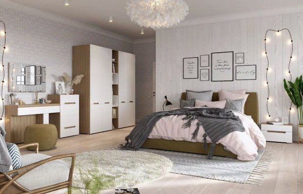 Лаконичная и стильная мебель "Ангстрем" из коллекции "Анри" не будет отвлекать внимание от фактурной отделки, но при этом обеспечит максимальный комфорт и функциональность. Однотонные фасады мебели с интегрированными ручками подчеркнут минимализм и добротность интерьера. Кровать с мягкой обивкой и пуфы — то, что нужно, чтобы добавить мягкости и уюта в обстановку. Завершающий штрих