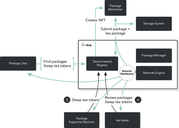Макс Хауэлл (Max Howell), автор популярной на платформе macOS системы управления пакетами brew (Homebrew), развивает новый пакетный менеджер Tea, позиционируемый как продолжение развития brew, выходящее за рамки пакетного менеджера и предлагающее унифицированную инфраструктуру управления пакетами, работающую с децентрализованными репозиториями. Проект изначально развивается как многоплатформенный (в настоящее время поддерживаются macOS и Linux, в разработке поддержка Windows). Код проекта написан на языке TypeScript и распространяется под лицензией Apache 2.0 (brew был написан на Ruby и поставлялся под лицензией BSD). Tea концептуально не походит на традиционные пакетные менеджеры и вместо парадигмы "я хочу установить пакет" использует принцип "я хочу использовать пакет". В частности, в Tea нет как таковой команды для установки пакета, вместо которой применяется формирование окружения для выполнения содержимого пакета, не пересекающегося с текущей системой. Пакеты размещаются в отдельн