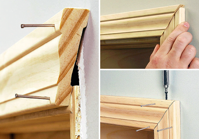 - Вид крепления. Выделяют телескопические и накладные изделия. Монтаж телескопических наличников проходит быстро благодаря тому, что г-образные планки крепят шиповым соединением. Накладные фиксируют с помощью клея, герметиков или металлических крепежей.