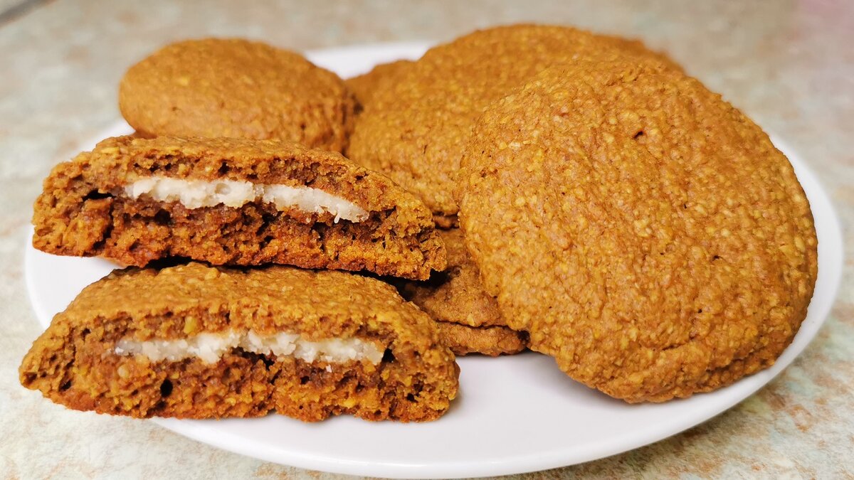 Друзья, всем привет! Хочу поделиться с вами невероятным рецептом не только для тех, кто следит за своей фигурой, а так же для тех, кто не ест глютен, сахар и молочку! Вы не найдете такого рецепта нигде. На данный момент я не ем глютен, молочку и сахар. Если вам интересно почему у меня такой рацион и какие результаты, пишите в комментариях, с удовольствием отвечу. Так же расскажу как избавилась от тяги к этим продуктам. В первые дни такого питания меня очень спасали эти печенюшки. Как говорится спасение утопающего дело рук самого утопающего. Что только не придумаешь, чтобы было сладенько и полезненько. И так поехали, открываю все секретики) Ингредиенты: Овсяная мука - 100 г. Крахмал - 15 г. Растительное молоко (у меня овсяное без сахара) - 50 мл. Оливковое масло - 25 мл. Изюм (можно взять курагу, финики, чернослив и т.п.) - 25 г. Вода - 40 мл. Соль - щепотка Разрыхлитель - 0,5 ч.л. Корица - 0,5 ч.л. Ванилин - щепотка. Какао - 20-30 г. Для начинки: Арахисовая паста без сахара - 30-40 г.