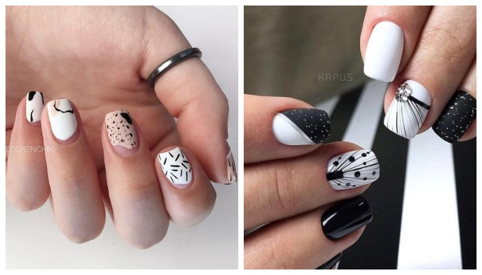 Нейл мастера - творческие люди у которых в голове всегда множество идей. В данной статье они решили поделиться с нами необычными и креативным идеями дизайна маникюра. Хищный принт + матовое яркое покрытие — шикарный тандем, который смотрится максимально стильно и современно, как на длинных, так и на короткий ногтях разной формы. На пике популярности дизайн маникюра, который включает в себя два и более контрастных оттенка. Перед вами яркий дизайн, включающий в себя синий, белый, а также черный цвет лака. Изюминку однотонному покрытию добавляет звериный принт и стильные геометрические линии. Абстракция — дизайн, который стал трендом еще в начале прошлого года и он по сей день занимает лидирующие позиции в современной индустрии красоты. Этот вариант дизайна каждый раз выглядит необычно и интересно, он неповторим, индивидуален и просто безупречен. Яркая абстракция на контрастном фоне может быть дополнена минималистичными геометрическим рисунками. Штрихи, линии, мазки, произвольные геометри