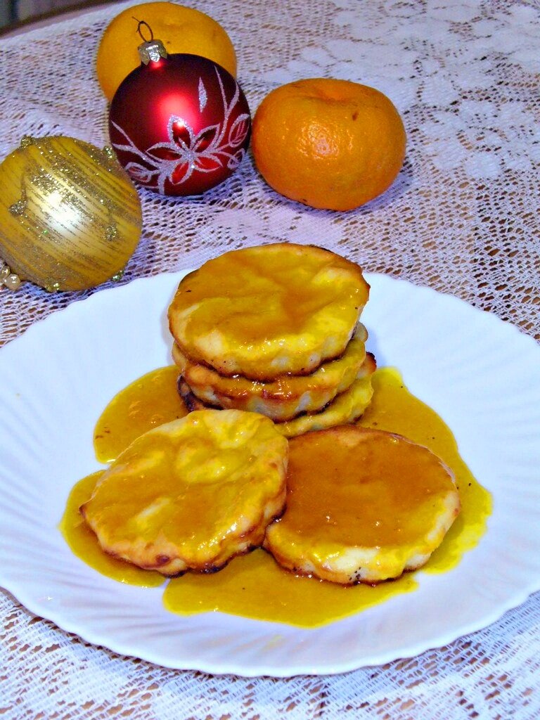 Для сырников - *желток одного яйца, пакетик ванильного сахара и 2 ст.ложки сахара - тщательно растереть. *добавить 1 пачку (240 гр) творога, 9% жирности, 2 ст.ложки манной крупы, цедру одного мандарина. *тщательно перемешать. *охлажденный белок 1 яйца, щепотка соли - взбить вилкой и добавить к творожной массе. *всё перемешать, разложить по формочкам (у меня силиконовые формы) и выпекать в духовке примерно 20 минут, до румяности. Для соуса - * 2 сочных, мясистых мандарина, очистить полностью, так сказать, до состояния филе) *подготовленные дольки засыпать сахаром (по вкусу) и проварить на небольшом огне. *остудить, перебить блендером. *добавить ликер, несколько крупинок свежемолотого чёрного перца и уварить соус до желаемой густоты. *можно подавать в горячем и холодном виде.
