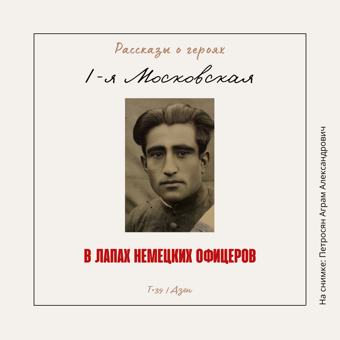 Выносить раненых с поля боя было трудно. В одном из боев командование поручило заместителю политрука Аргаму Александровичу Петросьяну эвакуировать раненых бойцов в безопасное место. Петросьян отправился выполнять приказ командира. Когда он оказывал помощь первому раненому, к нему подползли два человека в форме Красной Армии: один со знаком различия старшего лейтенанта, другой — старшины. Неожиданно схватив Петросьяна за руки, они зажали ему рот и начали бить. Сомнения не было — это были переодетые немцы.