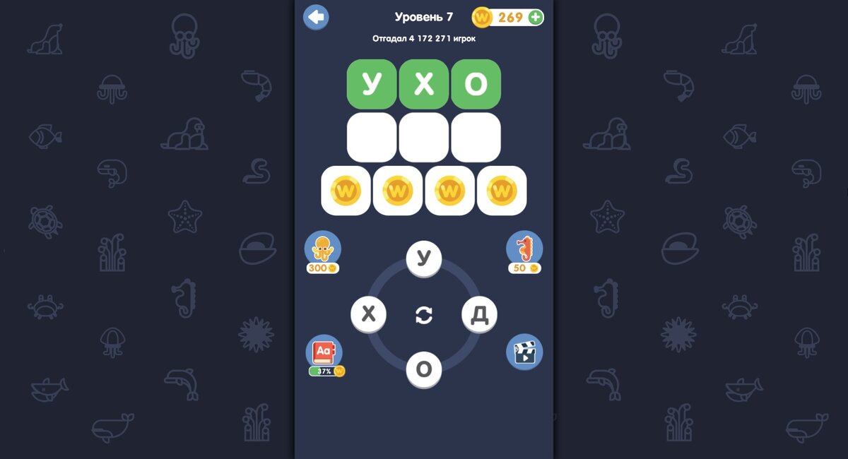 «Море слов» — пазл, в котором нужно складывать буквы в слова, попутно расширяя свой лексикон. Игра подойдёт тем, кто желает расширить словарный запас. Например, из четырёх букв «Л», «О», «Х», «М» можно сложить как минимум семь слов. Сможете угадать, каких? https://ya.cc/t/znAT-XRK3ovnJJ