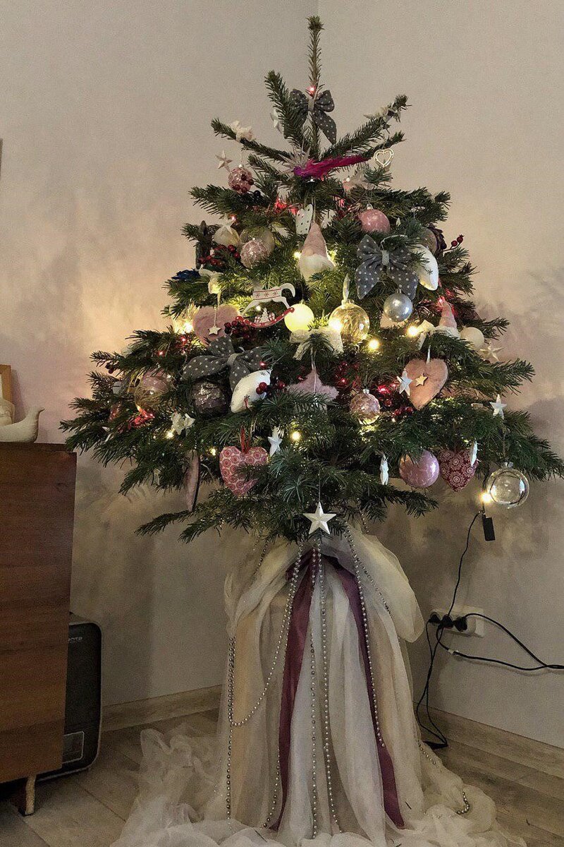 Представьте себе, роскошно украшенное новогоднее дерево, а под ним — скучная металлическая или пластиковая подставка… Странно, не правда ли?! Другое дело — интересно декорировать низ елочки. Признавайтесь, вы сразу подумали о белой ткани с мишурой или о целом сугробе из ваты с блестящим дождиком? Это был тест на возраст — варианты для настоящих консерваторов. Ваше новогоднее дерево достойно большего. Так как же спрятать не привлекательную подставку и чем ее можно заменить? Собрали ТОП-5 идей в нашей статье. Идея 1. Наряжаем в юбку Цельная маскировка, которую можно надеть на ствол елочки, называется юбочкой из-за похожей формы. Ее можно сделать или купить: из ткани, оберточной и упаковочной бумаги, связать из шерсти или даже сплести из веток. В декабре готовые юбки легко можно найти в любом гипермаркете. Если решите сделать украшение самостоятельно, обведите на выбранном материале что-нибудь круглое и вырежьте отверстие под ствол в середине. От того, какой будет радиус круга, зависит,