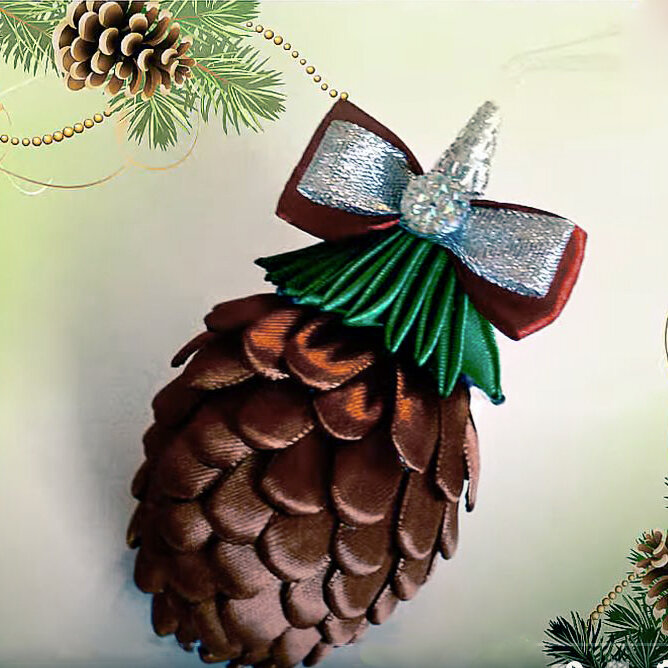 Елочная игрушка «Шишка». Мастер-класс. Канзаши /Christmas tree toy «Сone». Master class.Kanzashi: