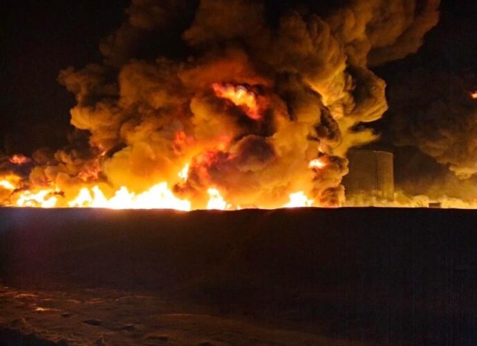 На фото: предыдущая атака на нефтяной терминал в Сураже