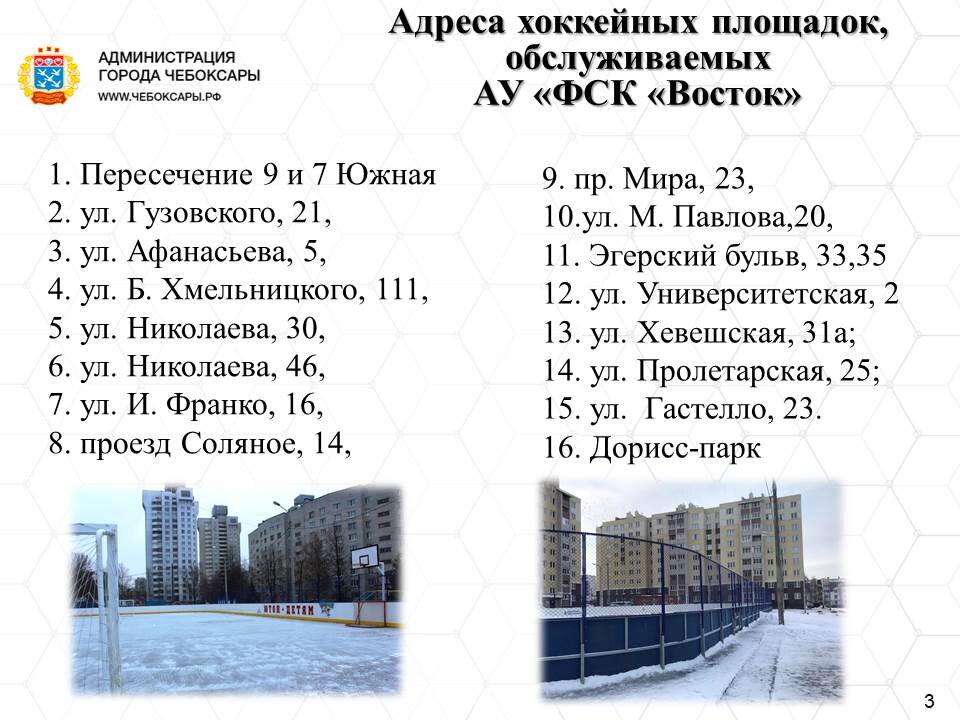 В Чебоксарах в зимний период будут работать более 50 катков. Об этом на еженедельной планерке у руководства города сообщил начальник управления физической культуры и спорта Алексей Соловьев. Он отметил, что самые большие катки будут залиты в детском парке А. Г. Николаева, в парке «Амазонии», на стадионе «Олимпийский» и «Чебоксары-Арене». Кроме того, в круглогодичном режиме открыт для посещений каток «Новое поколение» на стадионе «Спартак». После 10 декабря запланировано открытие хоккейных коробок на стадионах «Энергия» и «Спартак». АУ «ФСК «Восток» будет обслуживать 16 хоккейных площадок, на десяти из них будет доступен прокат коньков. Отметим, что все площадки будут работать по единому стандарту, предусматривающему соблюдение требований по качеству льда, наличие раздевалок и скамеек, музыкальное сопровождение и новогоднее оформление, а также освещение. Кроме того, заключены договоры на поставку воды и электроэнергии с управляющими компаниями, которые будут обслуживать хоккейные площад