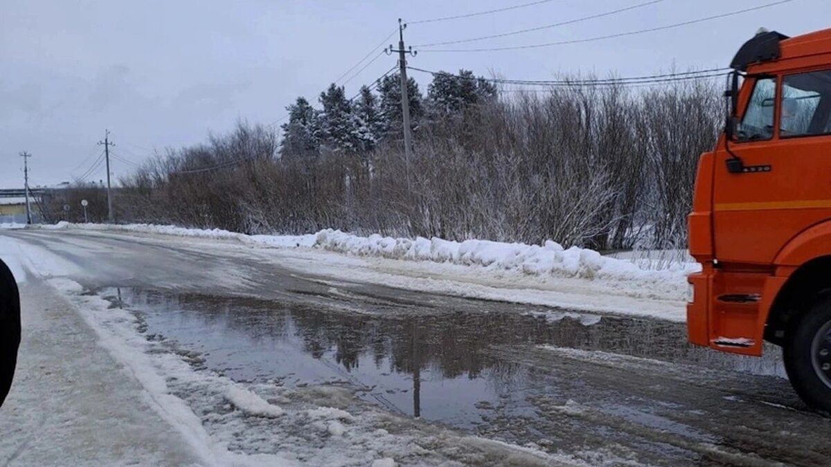 «Скоро будет каток»: в Ноябрьске дорогу залило из-за очистки канализационного коллектора