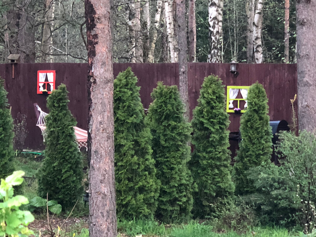 Прошел год, окошки как новые, шторки постирались дождями, краска не выцвела. На следующий год, наверное освежим. Видно будет..