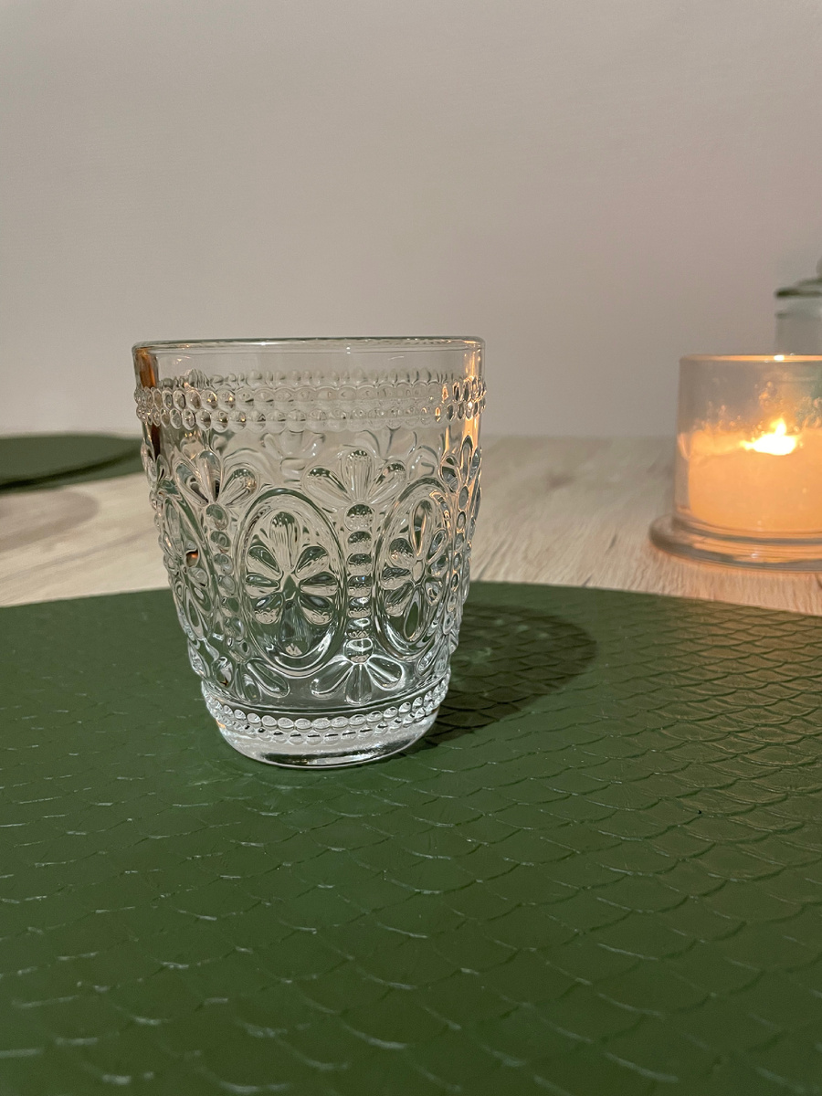 Сейчас актуален вопрос организации праздничного стола в канун новогодних праздников. И несомненно наши блюда и яства ,являются основными украшениями стола. Но тем не менее желание украсить свой праздничный стол каким-то необычным способом, акцентом -это неотъемлемая часть женской души. Как известно все мы любим приготовить много еды, разнообразной и всевозможной. Но важным атрибутом новогоднего стола , исключая сами блюда, является сервировка. На мой взгляд именно сервировка, потому что она доставляет эстетическое удовольствие во время приема пищи. Маленькие атрибуты, будь то салфетка, необычные столовые приборы, или фужеры всегда приносит блеска яркости нашему праздничному столу. К чему это я всё? На днях приобрела для себя шесть стаканов стеклянных стаканов, граненных с интересным рисунком. Многим может показаться неинтересным, но на мой взгляд очень красивые стаканы и во время обеда, когда на столе свечи , еда и украшения эти стаканы дополняет красоту нашего стола. Я в вос