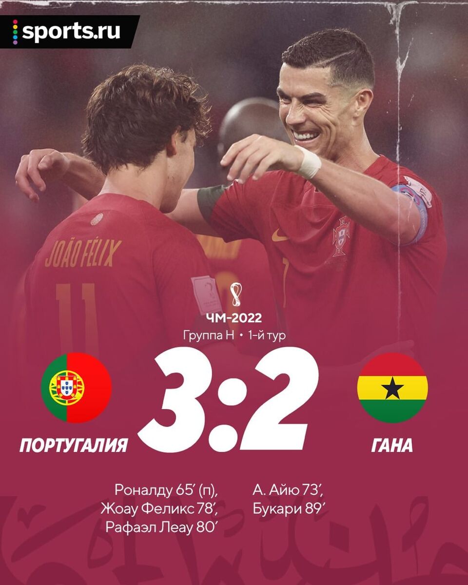 Португалия выигрывает Гану со счетом 3:2 ⚽️