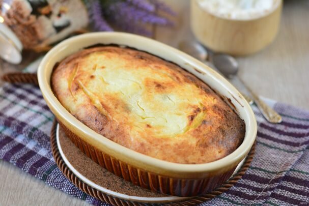 Приготовьте ароматную и полезную творожную запеканку, она вам напомнит тот самый вкус детства. Берите на заметку рецепт и готовьте с удовольствием! Это просто и вкусно! Описание приготовления: Творожная запеканка "Вкус детства" — это сочетание творога с сахаром, изюмом и сливочным маслом. Для нежности и приятного аромата добавьте сметану. С манкой и разрыхлителем запеканка будет очень пышной. Ингредиенты: Творог — 250 Грамм Сметана — 70 Грамм Манка — 2 Ст. ложки Яйца куриные — 1 Штука Разрыхлитель — 1/2 Чайных ложки Сливочное масло — 50 Грамм Изюм — 40 Грамм Сахар — 70 Грамм Подготовьте все ингредиенты. Всыпьте творог в посуду, вбейте куриное яйцо и размешайте. Всыпьте сахар, разрыхлитель и размешайте. Растопите сливочное масло и влейте к творогу. Добавьте промытый и высушенный изюм, всыпьте манку и размешайте. Оставьте заготовку на 15 минут, чтобы манка набухла. Выложите творожную массу в емкость для запекания, разровняйте. Смажьте поверхность запеканки сметаной и отпр