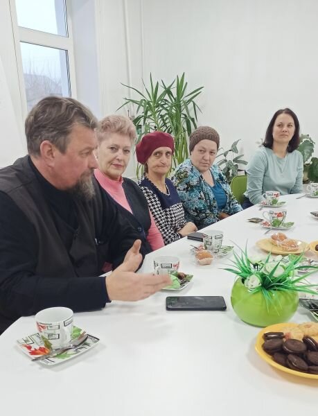 Благочинный храмов Болховского округа протоиерей Александр Кузнецов встретился с женами и матерями мобилизованных. Во время беседы священник выразил поддержку близким, сообщили в орловской митрополии. За чашкой чая в Семейном МФЦ отец Александр поделился с орловчанками впечатлениями от общения с бойцами, участвующими в СВО. Священник ездит в прифронтовую зону, встречается с российскими военными и духовно окормляет их. От жителей Орловщины батюшка привозит для солдат гуманитарную помощь. В ходе беседы отец Александр сказал слова поддержки женщинам, которые сейчас переживают за своих мобилизованных мужей и сыновей. Благочинный отметил, что в это непростое время самое главное — молитва. «У нас сейчас с вами одна задача — молиться и ждать своих победителей», — добавил протоиерей Александр Кузнецов.