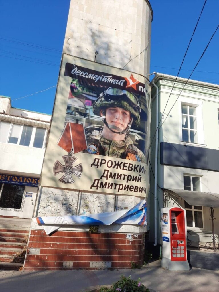 Такие детские послания ежедневно опускаются в ящик для писем, установленный в Саках под баннером в честь героя-артиллериста Дмитрия Дрожевкина. К несчастью, молодой боец уже никогда их не прочтёт: он погиб в ходе специальной военной операции в апреле под Николаевом. Ему было всего 28.