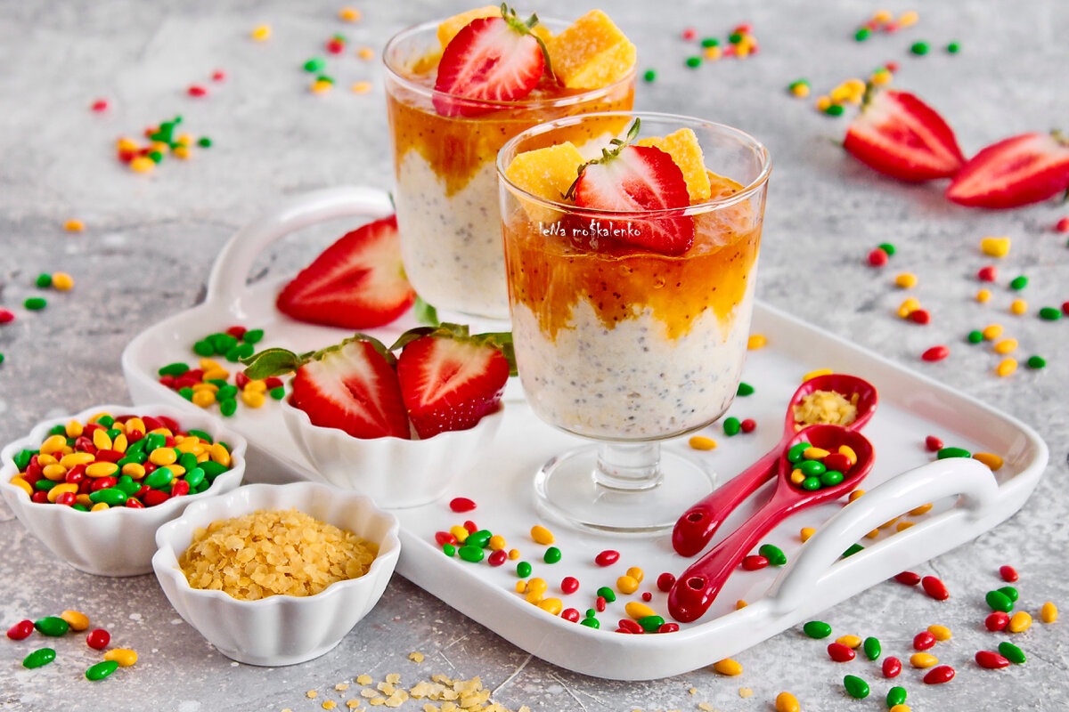 Шалом, кошерные мои🤩 Пока не зашёл Шабат, оставлю здесь полезную идею – рецепт каши по-быстрому. 💥 Эта экспресс-идея для тех, кому слова «каша» и «молоко» кажутся просто невыносимыми. Даже, если каша – не в голове, а в бокале. Да, я сегодня вам предлагаю не просто манную на тарелке, а самый настоящий злаковый десерт. В духе модных диет, когда «санкции» на молоко – обычный коровий «сок» накладываются безоговорочно. И тут вступают оркестром удивительного вкуса и пищевой доминанты умиротворения кокосовые сливки. Благо сейчас это уже – не диковинка, а вполне доступный продукт. ✊ И если уж совсем по-модному, то я решила пшённые хлопья в этом рецепте дополнить для желейной десертности семенами чиа и кокосовой стружкой. Кстати, обратите внимание: когда стружку кокоса будете подмешивать в горячую кашу – аромат не оставит равнодушным всю вашу семью. Но самая удивительная вишенка на торте – морковный мармелад с цитрусами и жареным маком. Ну, а иначе зачем я веду мармеладную пропаганду сре