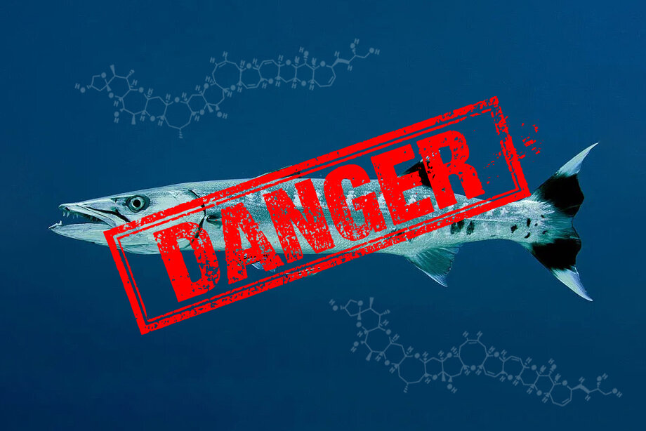 А вы знали, что центр по контролю и профилактике заболеваний (CDC) США не рекомендует употреблять в пищу мясо барракуды и мурен? Это связано с тем, что в их организме в непредсказуемые периоды времени могут присутствовать токсины - в первую очередь сигуатоксин (ciguatoxin), майтотоксин (maitotoxin), а также вероятно и бреветоксин (brevetoxin) - вырабатываемые одноклеточными планктонными микроорганизмами Dinoflagellata, и накапливающиеся в организме рыб в процессе биомагнификации, то есть при передаче по пищевым цепям. Попав в организм человека, эти токсины вызывают достаточно серьезное отравление, которое носит название Сигуатера. У человека оно чаще всего сопровождается тошнотой, рвотой, диареей и онемением конечностей. Его симптомы обычно проходят в течение 4-7 дней, но в редких случаях продолжаются до 1 месяца. Интересно, что определить наличие токсинов в организме рыб по их внешнему виду или поведению невозможно, как и при их приготовлении - они пахнут и имеют вкус нормальной рыбы.