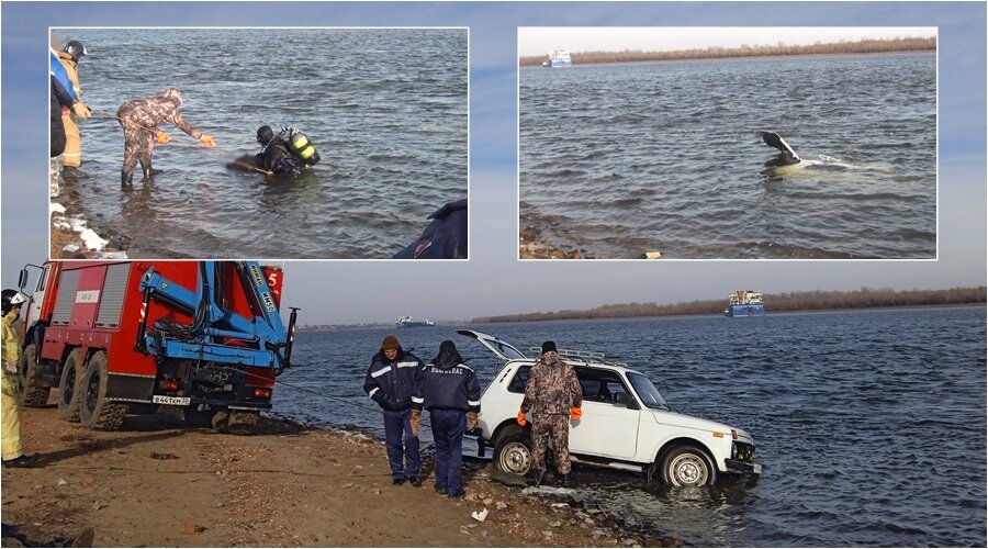 Сегодня, утром, в службу спасения поступило сообщение о том, что в районе п.АЦКК, при очевидных обстоятельствах, в р.Волга съехал автомобиль, в котором находились люди. На место происшествия выехали спасатели ПЧ№5 и водолазно-поисковая группа Трусовской спасательной станции ГКУ “Волгоспас”. Водолазы извлекли из утонувшего автомобиля “НИВА” тела двух мужчин. Затем с помощью аварийно-спасательного автомобиля и само транспортное средство было поднято из воды. По предварительным данным, в утонувшем автомобиле находилось 4 человека, двум удалось самостоятельно выбраться на берег. Все детали и обстоятельства произошедшего устанавливают сотрудники правоохранительных органов.