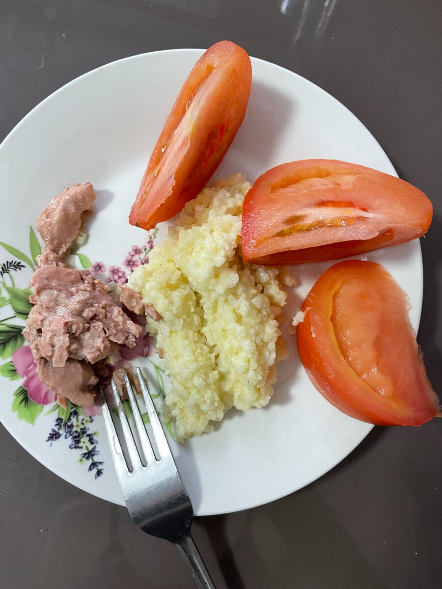 Да, фото не для соц сетей, но я решила выставить. Грешила я часто в последнее время и прыщи не заставили себя долго ждать. Исправляюсь) На фото пшено, печень минтая и помидоры. На десерт сегодня никакой выпечки. Только чуть винограда и хурмы.