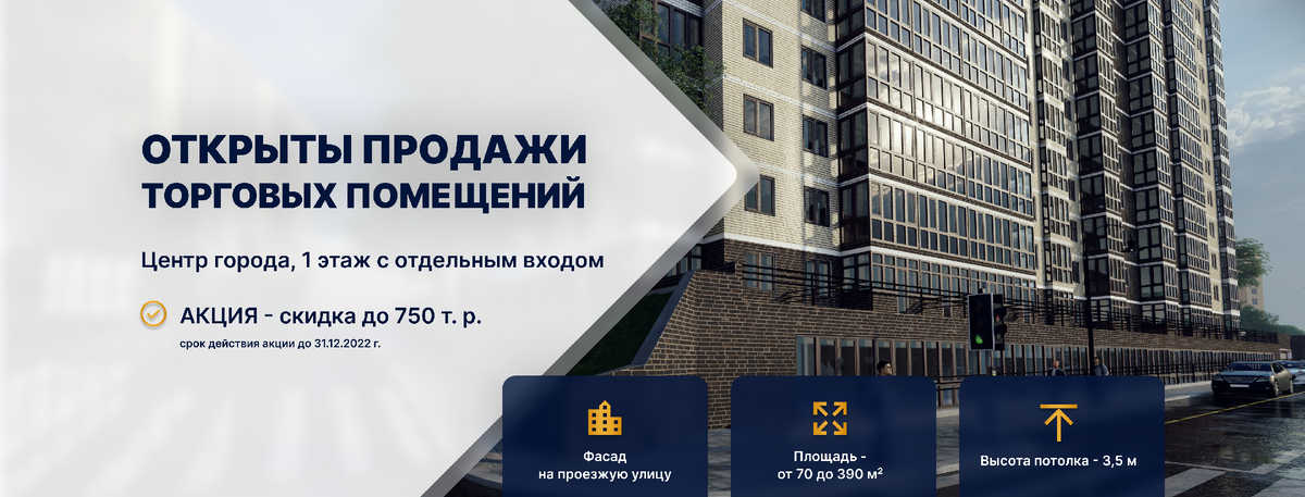 Застройщик «Жилой Комплекс Мега-1» (входит в ГК «Мега») объявил о старте продаж торговых помещений в жилом комплексе «История». ЖК располагается на пер. Доломановском, 183 в Ростове-на-Дону. Коммерческие помещения располагаются на первом этаже комплекса. Фасад — на проезжую улицу, поэтому ваш бизнес будет узнаваемым для горожан. Доходность таких объектов будет составлять до 15% годовых, что намного выгоднее вкладов в банках. На продажу выставлены объекты площадью от 70 до 390 кв. м с высотой потолков в 3,5 м. Стоимость квадратного метра начинается от 122 тыс. рублей в зависимости от площади помещения. Узнать подробности и записаться на показ можно по телефону: 8 (863) 322-44-54.Кстати, до конца 2022 года на покупку коммерческих помещений действуют скидки до 750 тыс. рублей. Напомним, ЖК «История» — это новый комплекс от группы компаний «Мега». Дом комфорт-класса будет иметь 20 этажей и рассчитан на 283 квартиры. Сдача объекта в эксплуатацию намечена на второй квартал 2024 году. Как уже
