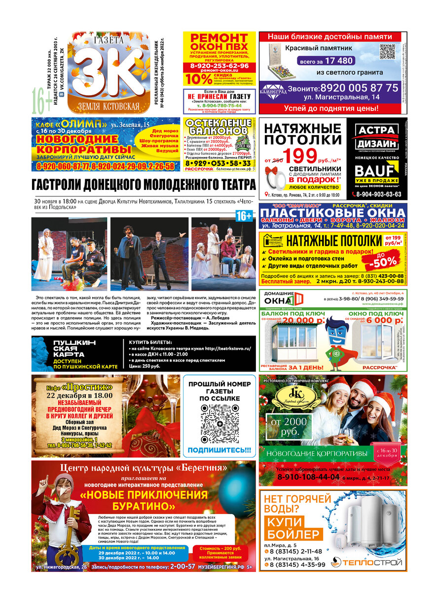 Газета "ЗЕМЛЯ КСТОВСКАЯ"№ 44 (943) от 26.11.2022г.