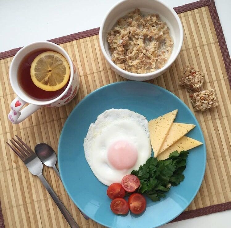Ночью организм отдыхает. Перед новым полноценным рабочим днем необходимо набраться энергии. А ее человек получает из пищи. Привычку пропускать завтрак я бы отнесла к разряду вредных. Ежедневный отказ от утренней порции витаминов и минералов плохо влияет на наше здоровье и способствует, например: Врачи рекомендуют выбирать продукты для завтрака, богатые питательными веществами, такими как магний, клетчатка, калий и кальций; а также избегать продуктов с большим содержанием сахара. Сбалансированный завтрак, содержащий не менее 350—450 калорий, улучшает общее состояние здоровья и заряжает энергией на весь день. Идеальный завтрак в первую очередь должен состоять из: Овсяная каша является одним из лучших вариантов завтрака. Цельнозерновая овсяная крупа наполнена клетчаткой, растительным белком, витаминами группы B и минералами, включая железо, кальций и магний. Овсяная каша уменьшает риск сердечных заболеваний, благодаря бета-глюкану, который нормализует уровень холестерина. Яйца содержат ви
