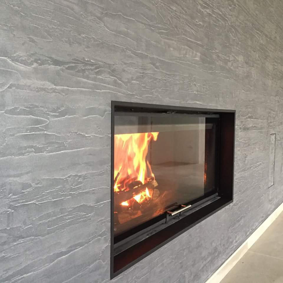 Любителям всего натурального стоит знать, что далеко не каждый природный камень годится для облицовки очага с мощной топкой. Понятно, что жаропрочный мрамор или гранит способны выдержать постоянный и значительный перепад температур. А вот более дешёвый песчаник годится только для декоративного дела. И цена таких материалов зачастую оказывается реально неподъёмной. Неплохой альтернативой для любой облицовки считается архитектурный бетон. Это недорогая, долговечная газонепроницаемая облицовка с высокими пластическими свойствами. Как самый бюджетный вариант – декоративная штукатурка из извести, глины, песка и асбеста.