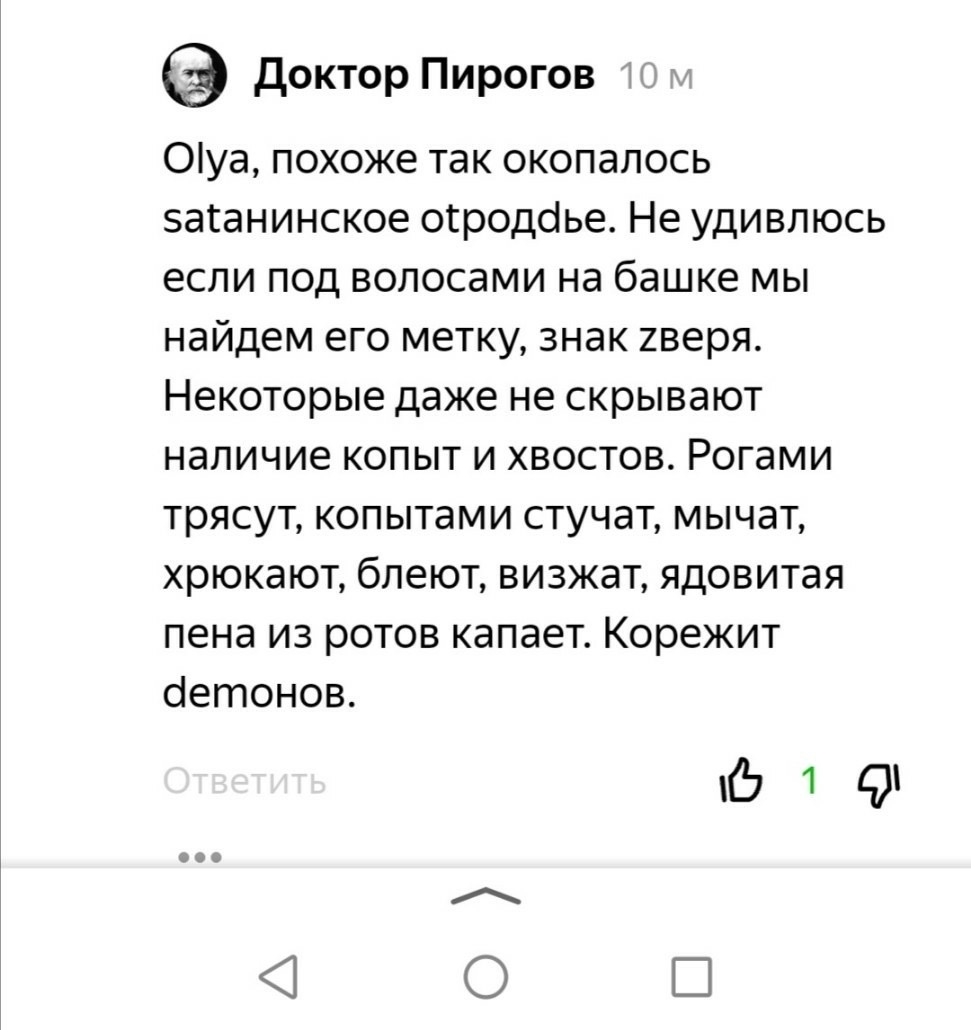 Добрый денечек, дорогие друзья! С вами я, доктор Куропатов! Смею заметить, что я настоящий доктор, квалифицированный, не самозванец! Чего не скажешь о лжедокторах, прикрывающихся именем Пирогова! Друзья мои, это же отдельная тема для новой научной статьи, и я начинаю над ней работать. В ней мы подробно рассмотрим пsихические отклонения, такие как раздвоение личности, мания величия, преувеличенная собственная значимость, погружение в больные фантазии.. Казалось бы это все больше присуще женщинам.. но нет, оказывается речь идет о особи мужского пола ( что мужской пол я сужу исключительно по наглядным первичным половым признакам) Так вот друзья, тема глубокая и требует тщательного разбора. . А вот пока для ознакомления, сравнения и обсуждения! Не стесняемся в выражениях, все мысли вслух! Мне очень пригодятся ваши умозаключения) Ну и занавес дамы и господа. … Всем удачи, здоровья физического и пsихического , всегда ваш, доктор Куропатов👨🏻⚕️!