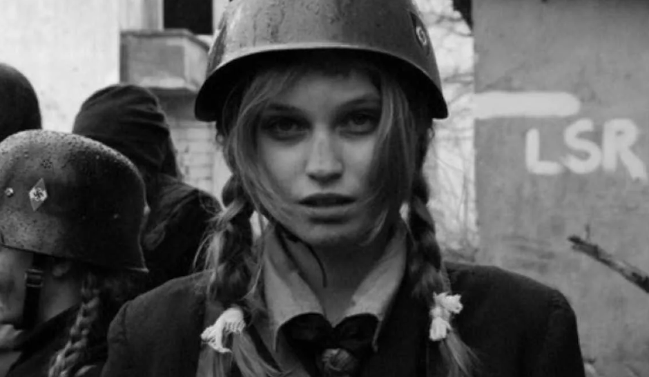 Немка опешила, но после начала раздеваться. Хлопает глазами, смотрит на русского старшину и краснеет от "привалившего счастья"