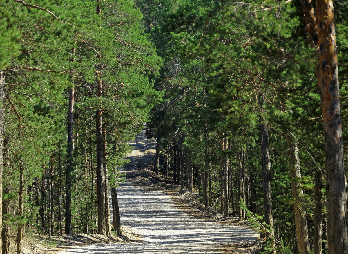 Сносная в общем грунтовка явно уходит в тайгу далеко, но в паре километров от трассы оснащена куда более заметным указателем на скалу Турук-Хая. Туда мы заворачивали уже на обратном пути, а потому не удивляйтесь закатному свету.