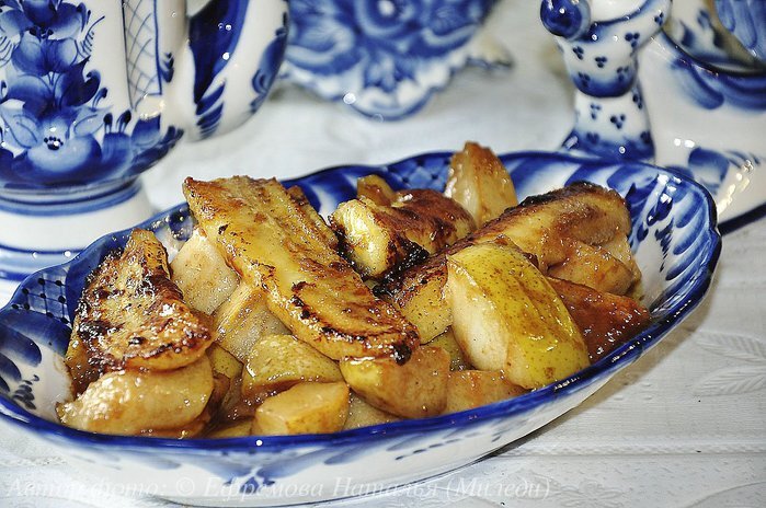 Рецепт простого десерта из моих любимых фруктов. Ингредиенты: — коньяк (1 ст.л.);