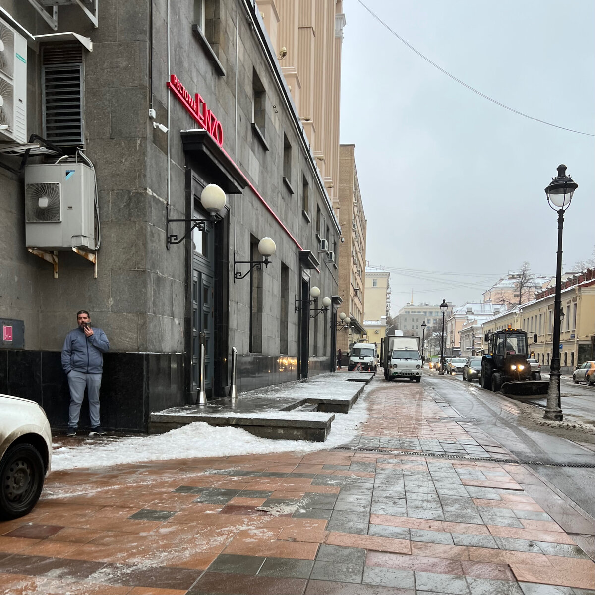 Расположение у Enzo все то же – сталинский серый Дом звукозаписи, он же Государственный дом радиовещания и звукозаписи, в самом конце Малой Никитской, рядом с посольством Тунисской Республики, где в свое время обитал гражданин Берия, а потом шушукались экстрасенсы в одной из своих битв. Вход массивный: черный мрамор, черные деревянные двери, два белых плафона из прошлого и красная вывеска на чужом языке. Сбоку серый кондиционер, а под ним сам товарищ Пумилия и тоже в сером. Внутри вначале идет предбанник с большим зеркалом, затем стойка приветствия с гардеробом, поворот направо и мини-коридор в свете красивых витражей, которые перекликаются с кафелем и ведут гостей в основной обеденный зал, состоящий из двух уровней и полуоткрытой кухни.