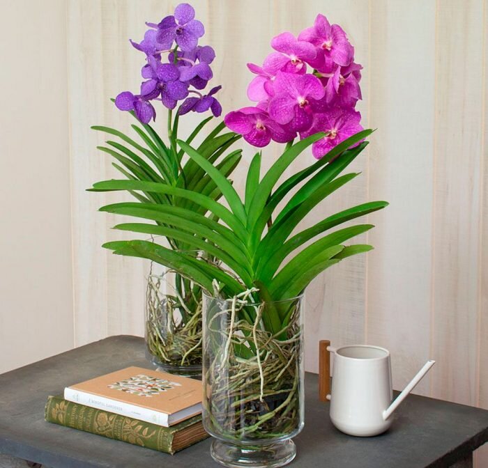 В Голландии ванду выращивают по-особенному. Ее размещают в широкой и объемной вазе из стекла. Если цветок необходимо полить, то теплая вода просто заливается в вазу. После того как от корней прекратят подниматься вверх пузырьки, это означает, что корневая система впитала в себя достаточное количество влаги, остатки жидкости сливают.