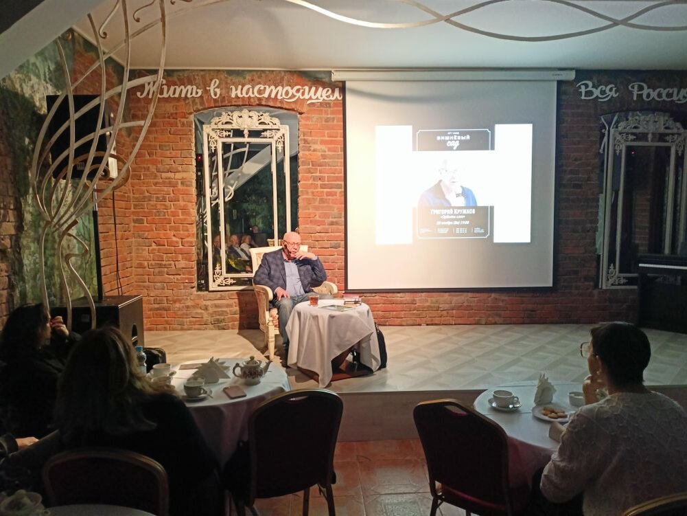 Григорий КРУЖКОВ — признанный переводчик англоязычной поэзии. Вечером в воскресенье, 20 ноября, он приехал в Сергиев Посад, прошёлся по занесённым первым снегом улицам города, где полтора века назад бродил Льюис Кэрролл во время своего русского путешествия, а затем Григорий Михайлович рассказал читателям о себе и своём ремесле на встрече в «Вишнёвом саду».