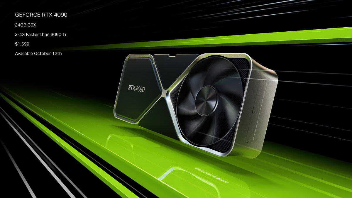 С 12 октября 2022 г. по цене в продаже появится GeForce RTX 4090 — лучшая видеокарта GeForce для игр и творчества, работающая в два раза быстрее и потребляющая столько же энергии, сколько и чемпион предыдущего поколения, GeForce RTX 3090 Ti! Этот качественный скачок в производительности стал возможен благодаря архитектуре Ada и множеству инноваций, описанных выше. Оснастив свою систему этой передовой видеокартой с 24 ГБ видеопамяти G6X, вы получите 16 384 ядра CUDA и мощность в 1321 терафлопс для тензорных ядер, 191 терафлопс для ядер RT и 83 терафлопс для шейдерных блоков. Вы сможете играть с самыми высокими настройками в разрешении 4K и с высокой частотой смены кадров. И получите возможность играть с полной трассировкой лучей, что обеспечит высочайший уровень точности, реализма и погружения. В современных играх с трассировкой лучей производительность увеличивается почти в 2 раза по сравнению с GeForce RTX 3090 Ti. А ожидаемые игры с RTX, такие как Cyberpunk 2077, Portal с RTX и NVIDI