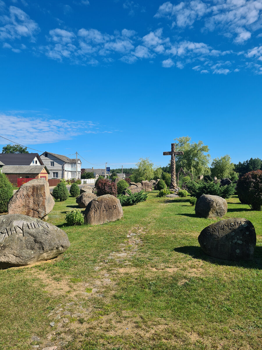 В первый день путешествия по Беларуси, я с группой из Минска отправился в небольшой агрогород Рубежевичи. Кстати, несмотря на свои малые размеры, городок или деревня мне показалась довольно-таки милой и ухоженной. Ухоженностью я буду удивляться на протяжении всего тура по Беларуси. Перед храмом нас встречает парк валунов открытие, которого было приурочено к 100-летию храма Святого Иосифа. В парке расположены 46 валунов, на каждом из них выбито название населенного пункта, имеющего отношение к истории Рубежевичей. Многократные просьбы верующих разрешить им постройку нового здания долгое время оставались без ответа, только в 1905 году после выхода «Манифеста об укреплении начал веротерпимости» строительство было разрешено. Каменная церковь в неоготическом стиле была возведена в 1907—1911 годах на северной окраине деревни, на холме. Костёл Святого Иосифа в деревне Рубежевичи построен в стиле неоготики в 1906-1910 гг.Храм построен из цемента и обложен каменными плитами. Его высота 45 метро