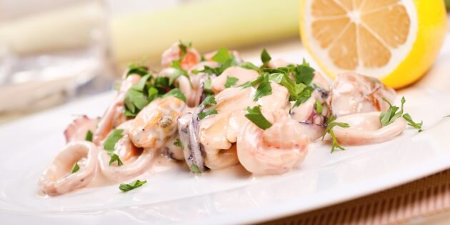 Ингредиенты Приготовление Кальмаров очистите и промойте. Нарежьте кольцами вместе с пореем. Чеснок измельчите или пропустите через пресс. В сковороде разогрейте сливочное и растительное масло на среднем огне. За 4–5 минут обжарьте порей с чесноком. Посолите, поперчите и посыпьте любыми специями. Добавьте кальмаров и готовьте ещё пару минут. Заправьте сметаной, а после повторного закипания засыпьте муку и перемешайте. Готовьте примерно 2 минуты под крышкой. Перед подачей посыпьте рубленой петрушкой.