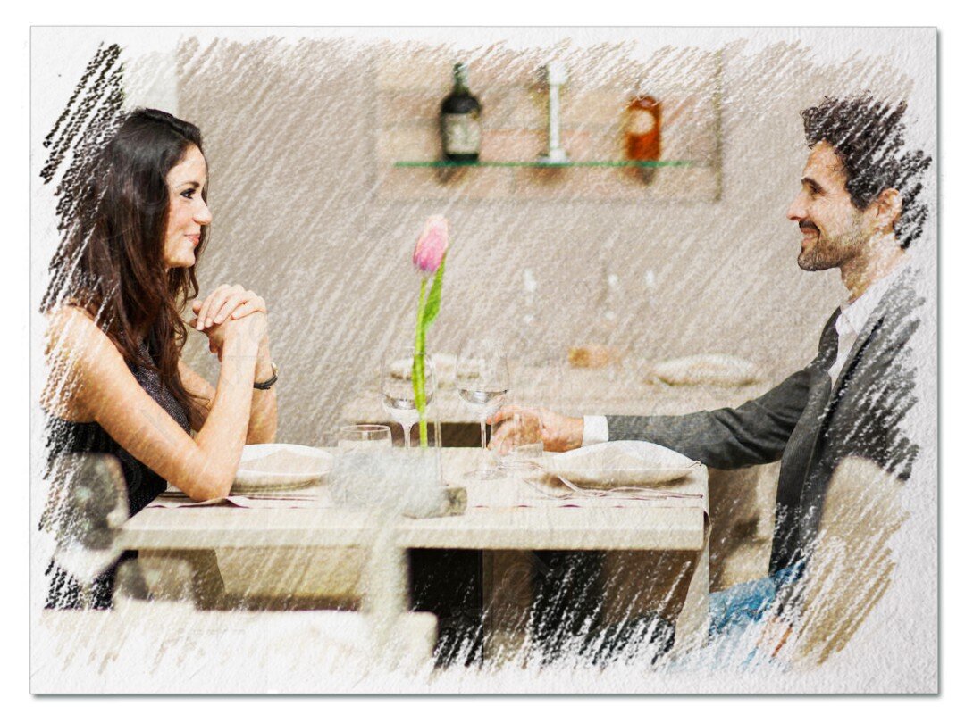Молодой мужчина заказал вина, что-то из еды, после этого отложил меню в сторону, сидел и смотрел на свою спутницу.