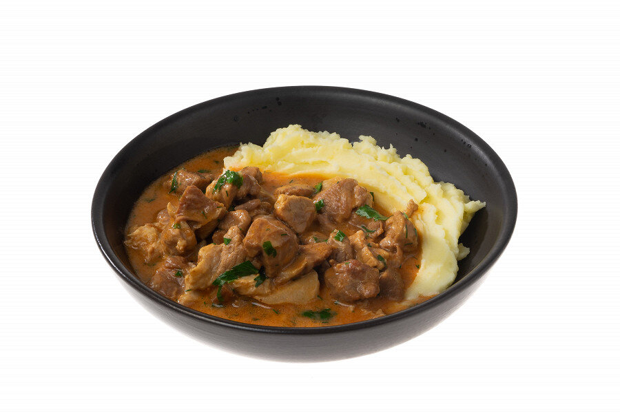Готовить тушеную свинину совсем несложно — главное, найти вкусное мясо, которое благодатно впитает в себя все соки. В этом рецепте не указано, какая именно часть свинины идет в дело, и это понятно: мясу предстоит долго томиться с луком и соусом, поэтому можно использовать самые сухие части, вплоть до вырезки. Указанная среди ингредиентов ржаная мука придаст блюду интересную текстуру — так подливка будет гуще и сытнее — и яркий терпкий аромат ржаной горбушки. Можно использовать и пшеничную муку, но тогда не добиться такого благоухания. ИНГРЕДИЕНТЫ НА 4 ПОРЦИИ Петрушка по вкусу Укроп по вкусу Молотый черный перец по вкусу Сольпо вкусу Чеснок 2 зубчика Сметана 100 г Ржаная мука 2 столовые ложки Репчатый лук 3 штуки Томатная паста 3 столовые ложки Растительное масло 50 мл Свинина 1кг 1 Мясо нарезать, обжарить, переложить в посуду для тушения. 2 Обжарить нашинкованный репчатый лук и добавить к мясу. 3 Залить водой (или мясным бульоном), посолить, поперчить. Ту