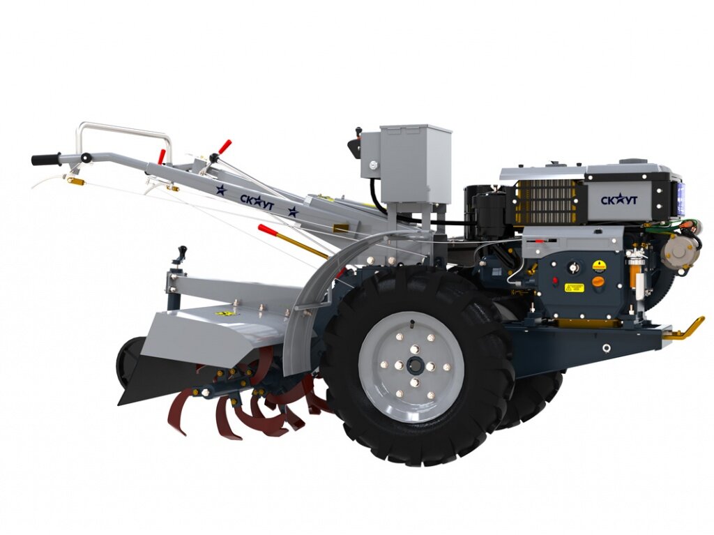 Мотоблок Скаут 81 DE предназначен для выполнения сельскохозяйственных и коммунальных задач на приусадебном участке. По техническим характеристикам модель 81 DE идентична мотоблоку 81D кроме того, что на мотоблоке 81 DE установлен электростартер, с которым двигатель заводится при помощи поворота ключа в замке зажигания.