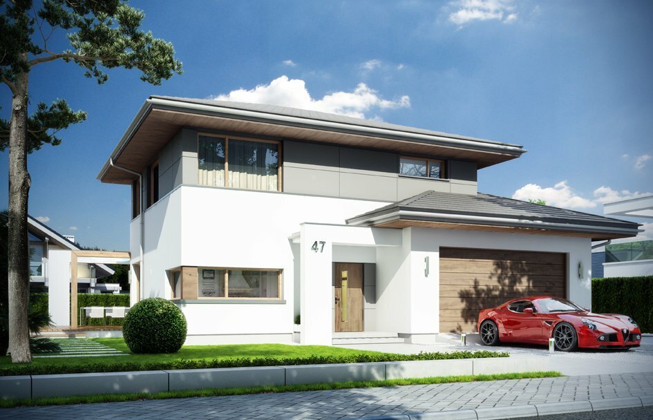Красивый двухэтажный коттедж "Модена" в стиле модерн придется по вкусу прогрессивным людям, для которых комфорт и удобный функционал являются бесспорными приоритетами. Геометрия фасада сама по себе является превосходным декором: строгость форм, простота линий. Оформление террасы и главного входа, балкона и окон придают дому футуристичной эстетики. Панорамные окна являются основным штрихом, подчеркивающим общую концепцию дома. Именно они – источники непрерывных потоков света, наполняющего каждый метр внутреннего пространства. Габариты - 14.2 x 12.9 м. Планировка Невероятный простор для жизни, творчества, реализации творческого потенциала и интерьерных идей ожидают Вас в стенах этого дома. ⭐Оставьте заявку прямо сейчас для получения оптимального коммерческого предложения. Для этого переходите по ссылке => проект "Модена". ⭐Мы возьмем на себя закупку и доставку, оснащение строительной площадки и само строительство «под ключ». Мы подарим Вам дом, о котором Вы всегда мечтали и который просл